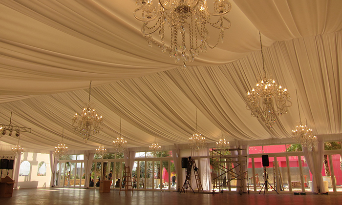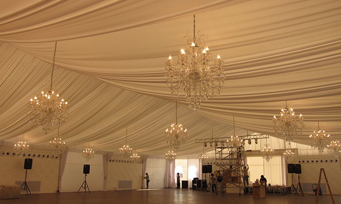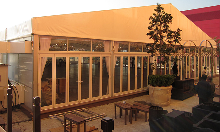 我司嚴(yán)格執(zhí)行ISO9001的質(zhì)量管理體系,確保不良產(chǎn)品的最小化及客戶滿意度的最大化。我們的的主要產(chǎn)品包括可移動的模塊化鋁合金支架篷房,有不同風(fēng)格的篷房及裝飾可供選擇,篷房跨度從3米到60米。此外,還包括錐頂篷房和吊頂篷房,以及篷房配件,如照明燈具、地板、空調(diào)、桌椅及其它用于篷房內(nèi)部的家具。篷房可廣泛應(yīng)用于大小型活動、婚慶、展會、體育、酒店、航空和工業(yè)等其它領(lǐng)域。篷房框架結(jié)構(gòu)為高強(qiáng)度鋁合金6061/T6型材,篷布為防水、阻燃的雙面PVC涂層聚酯纖維布,主體結(jié)構(gòu)風(fēng)載荷不少于100Km/h。