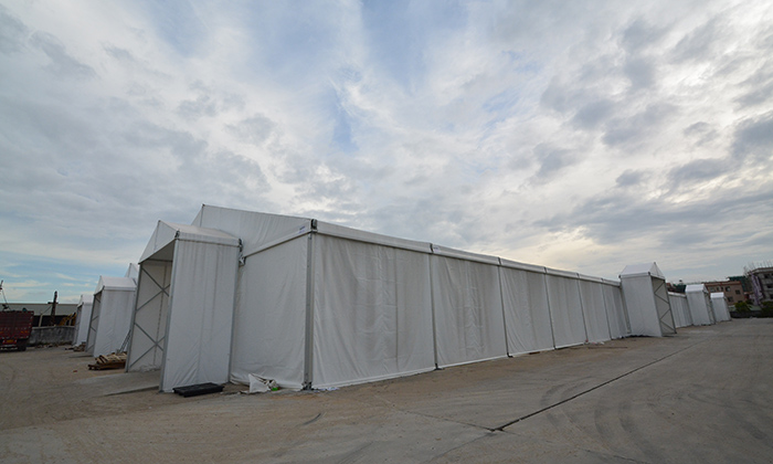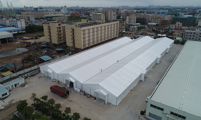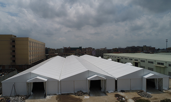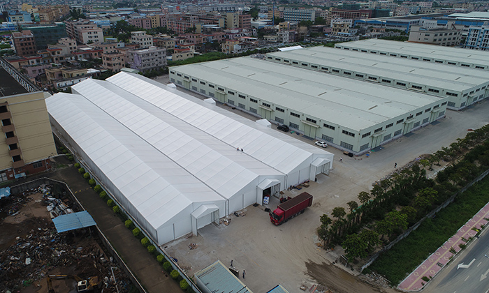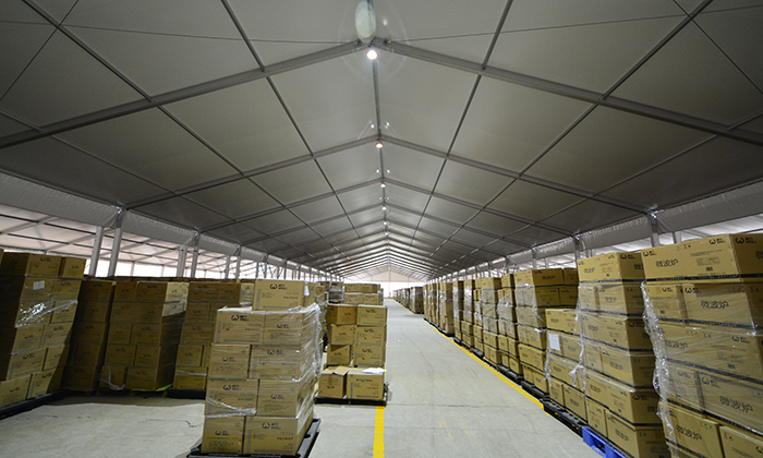 倉儲篷房主體也叫歐式篷房。歐式篷房不同于我們大眾理解的傳統意義上的帳篷。所謂篷房,顧名思義篷房在規模上可以媲美固定建筑。篷房的面積可以小到幾平米,大到幾萬平米,理論上甚至可以無限延展。篷房內部沒有支柱,空間100%利用。