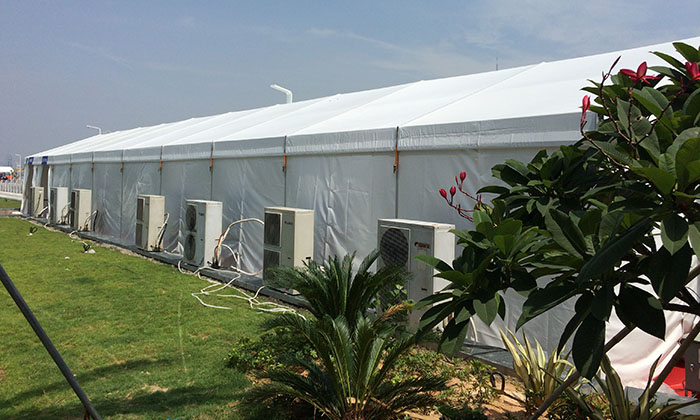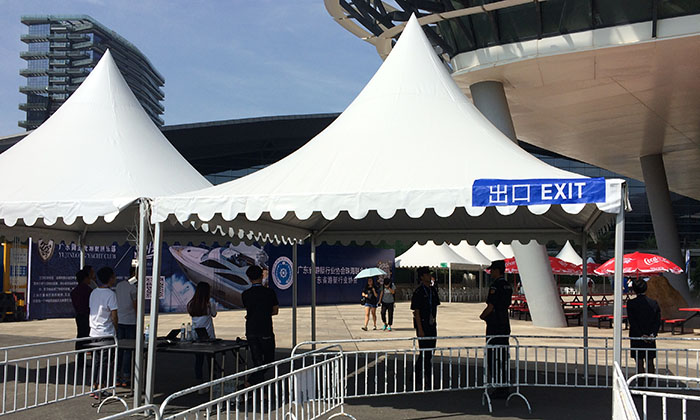 我司嚴格執(zhí)行ISO9001的質(zhì)量管理體系,確保不良產(chǎn)品的最小化及客戶滿意度的最大化。我們的的主要產(chǎn)品包括可移動的模塊化鋁合金支架篷房,有不同風格的篷房及裝飾可供選擇,篷房跨度從3米到60米。此外,還包括錐頂篷房和吊頂篷房,以及篷房配件,如照明燈具、地板、空調(diào)、桌椅及其它用于篷房內(nèi)部的家具。篷房可廣泛應(yīng)用于大小型活動、婚慶、展會、體育、酒店、航空和工業(yè)等其它領(lǐng)域。篷房框架結(jié)構(gòu)為高強度鋁合金6061/T6型材,篷布為防水、阻燃的雙面PVC涂層聚酯纖維布,主體結(jié)構(gòu)風載荷不少于100Km/h。