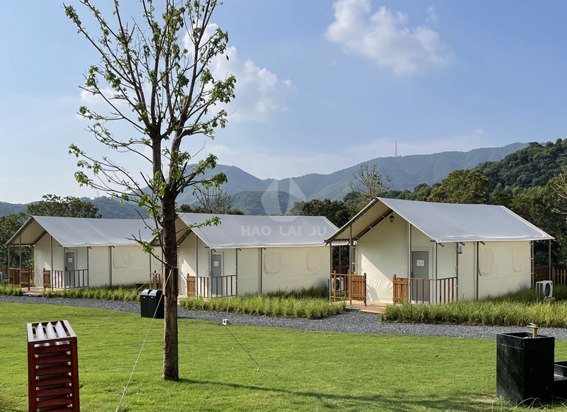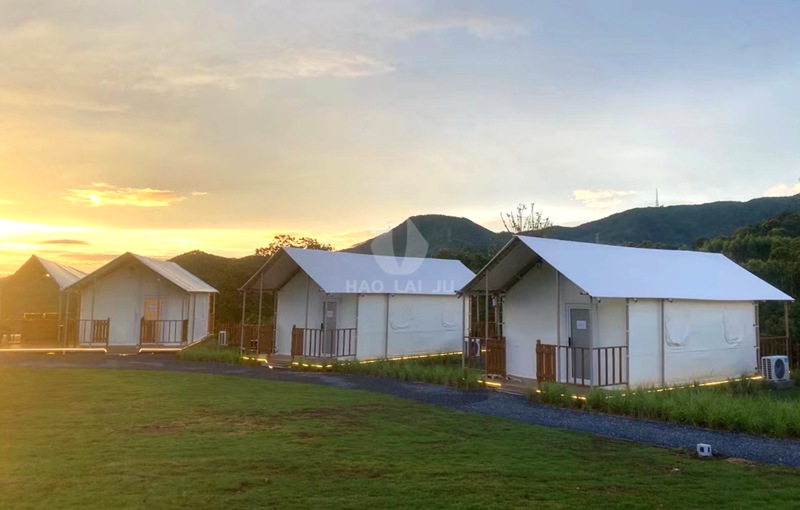 3、天幕小屋組合式金屬構件、牢固安全、拆裝方便。