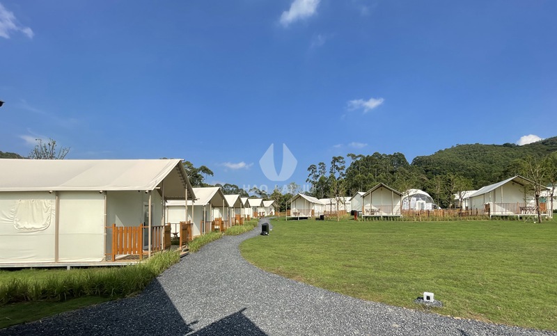 花都里·化屋度假營地位于烏江源百里畫廊化屋景區,營地有野奢帳篷22個,輕奢帳篷19個。